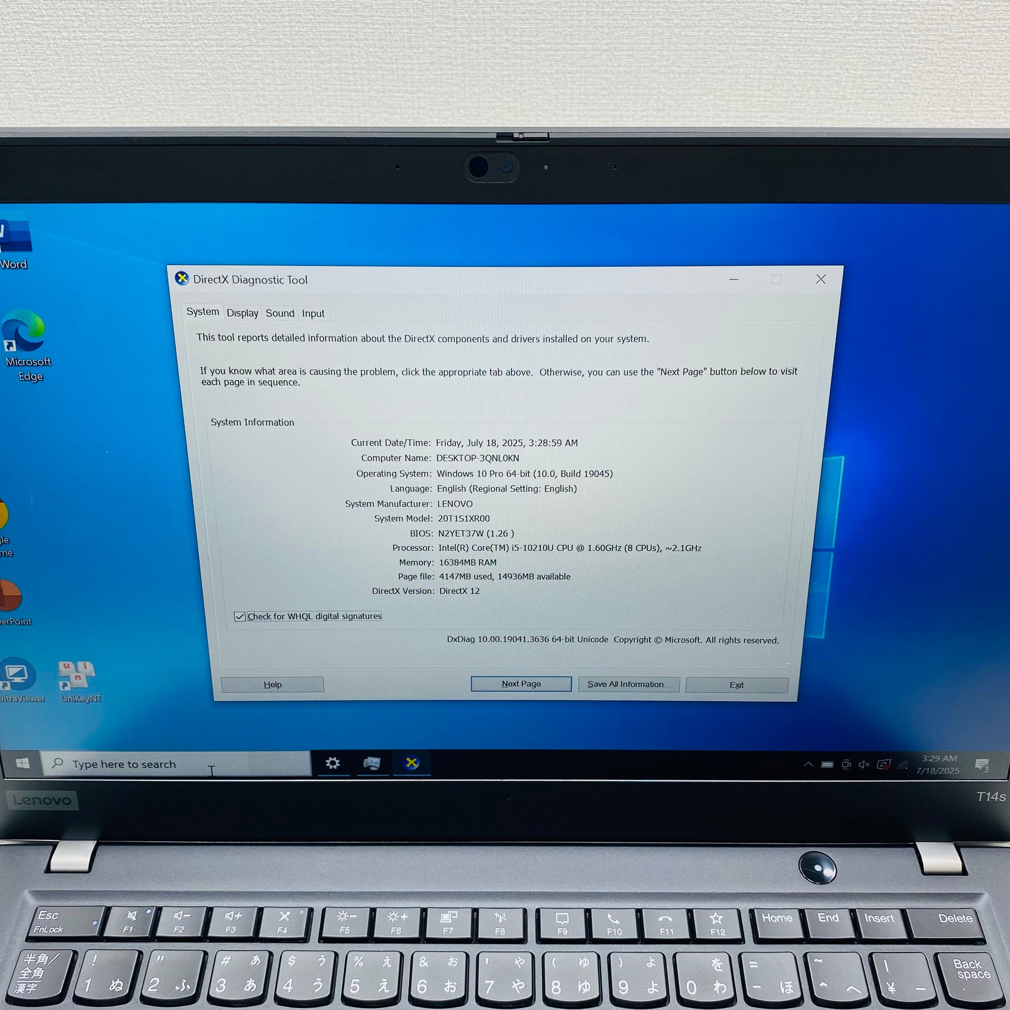 Lenovo ThinkPad T14s gen 1 14" Core i5 10th Ram 16GB SSD 256GB